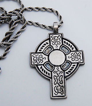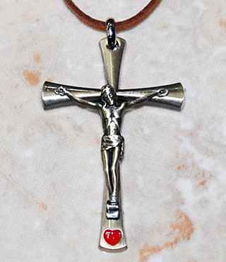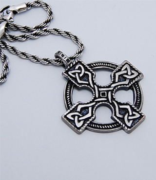 - 은 원형 하트테두리 십자가 펜던트-버니쉬